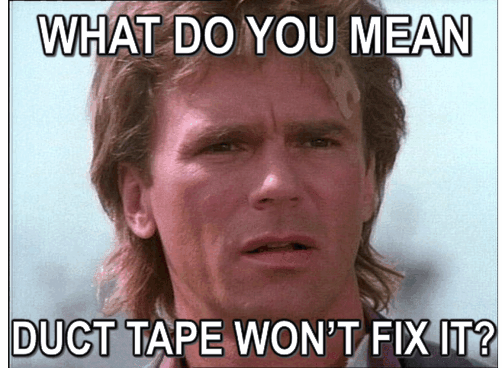 As a kid, I loved the TV show MacGyver in the late eighties, about a secret agent who basically saves the day with duct tape. But you can’t MacGyver yourself out of quality issues in real life.